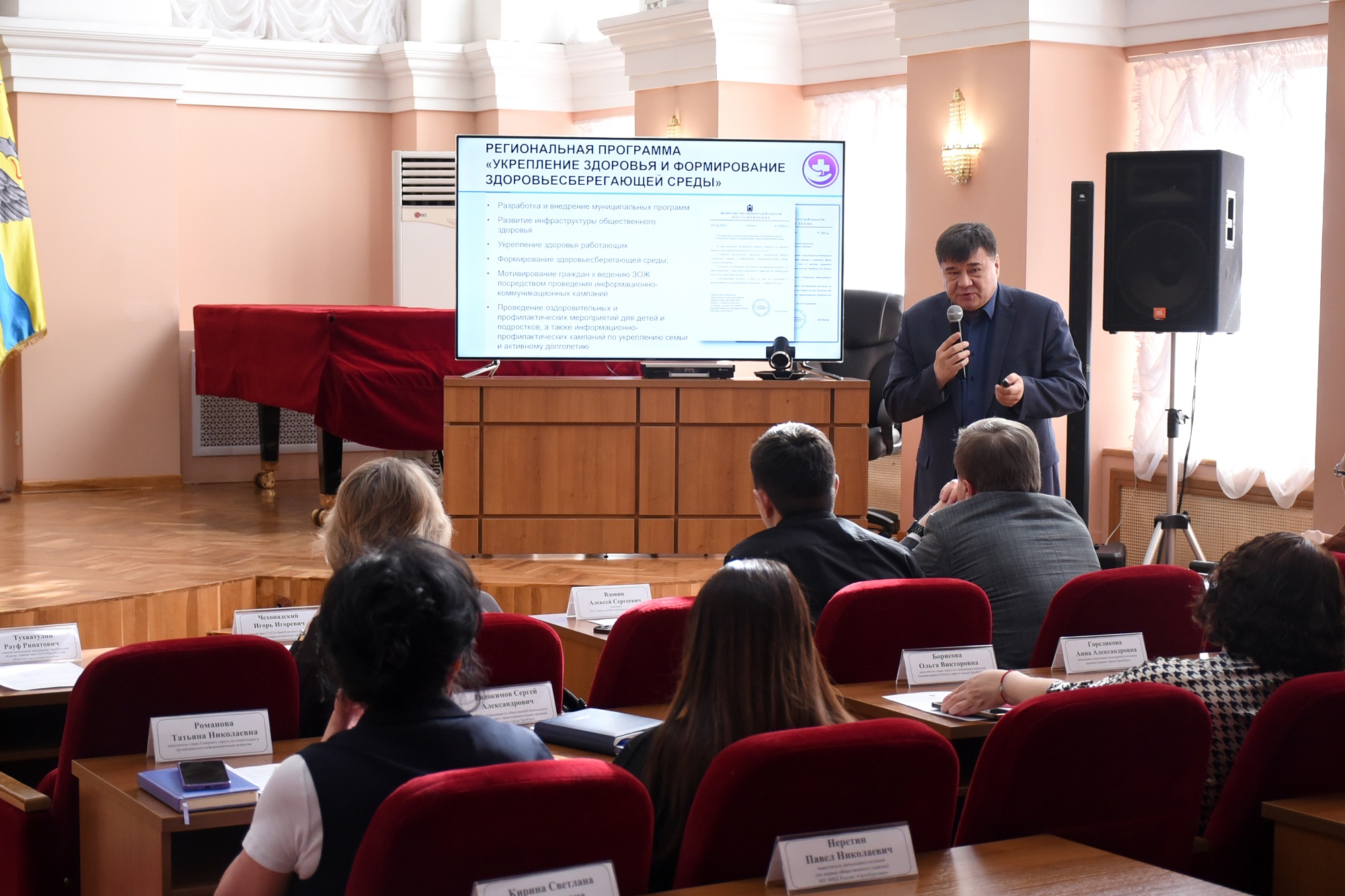 В ходе встречи Вадим Николаевич ознакомил участников с основными задачами региональной программы «Укрепление здоровья и формирование здоровьесберегающей среды» и обратил внимание на важность работы, направленной на повышение охвата населения профилактическими медицинскими осмотрами и диспансеризацией. Для этого необходимо распространить практику проведения выездного формата диспансеризации на рабочем месте, которая уже успешно применяется на предприятиях города Оренбурга. Кроме того, для привлечения внимания населения к прохождению профосмотров министерство здравоохранения планирует в субботние дни проведение двух медико-профилактических акций:
